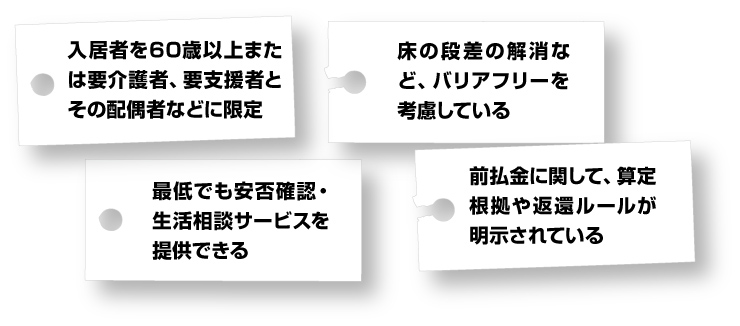 入居者に対する保護や、サービスの基準が厳格化されています。